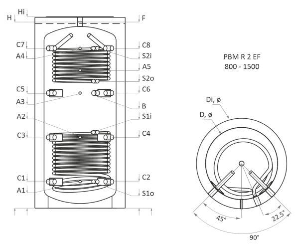 | Височина h без /с изолация hi | mm | 2140/2290 |