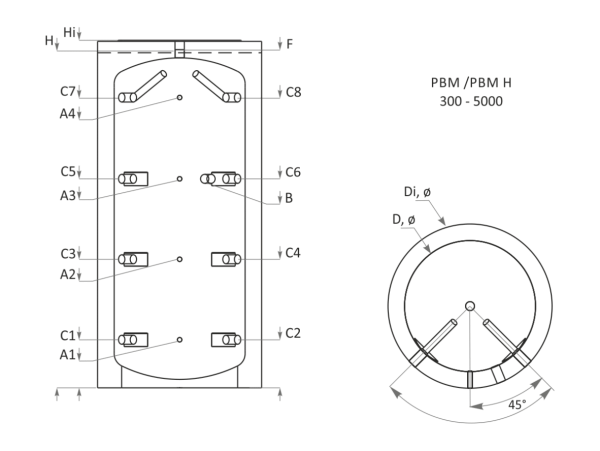 | Височина h без /с изолация hi | mm | 2140/2290 |