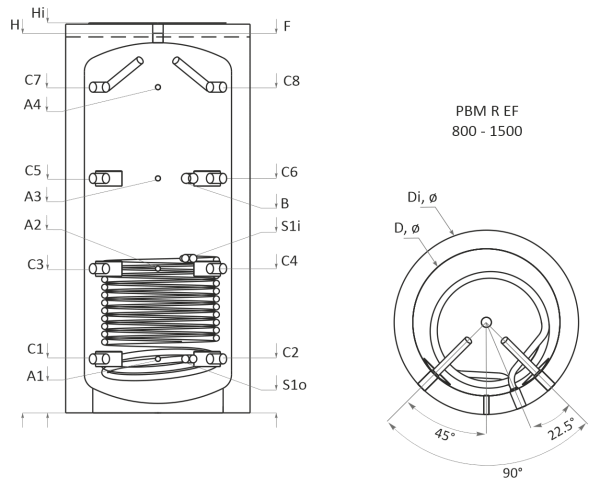 | Долна серпентина S1 Топлообменна площ Вместимост | m2 L | 2,48 |