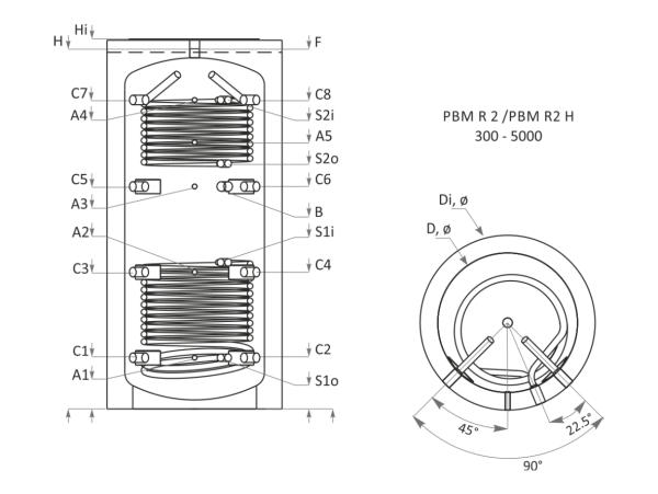 | Горна серпентина S2 Топлообменна площ Вместимост | m2 L | 1.1 6.6 |