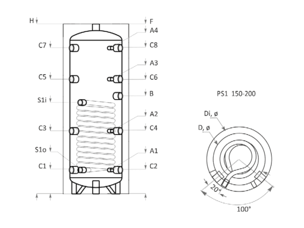 | Долна серпентина S1 Топлообменна площ Вместимост | m2 L | 1,6 9,9 |