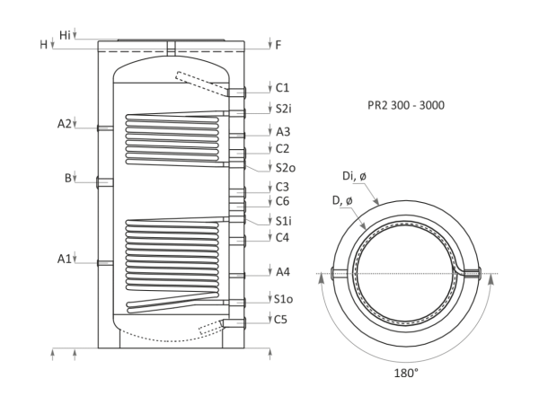 | Горна серпентина S2 Топлообменна площ Вместимост | m2 L | 2.4 14.8 |